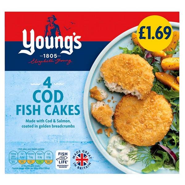 FROZEN YOUNGS 4 COD FISH CAKES 12X200G £1.69 PMP